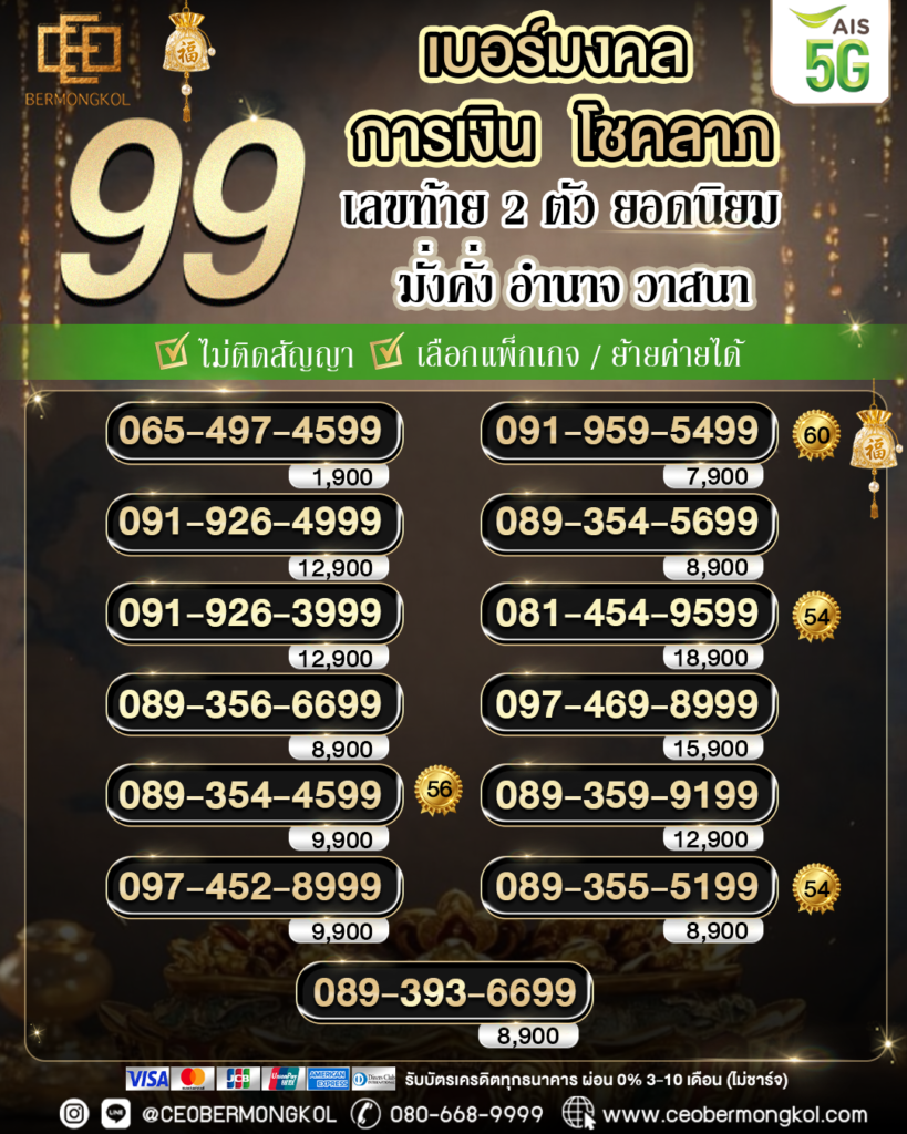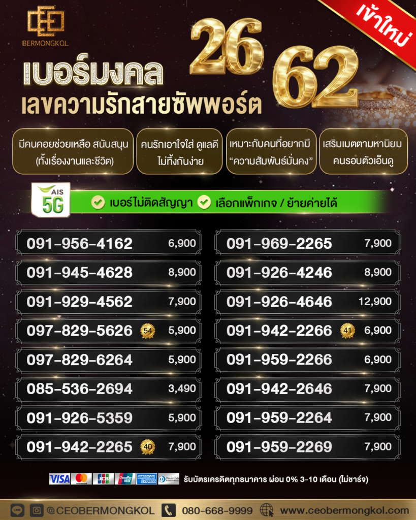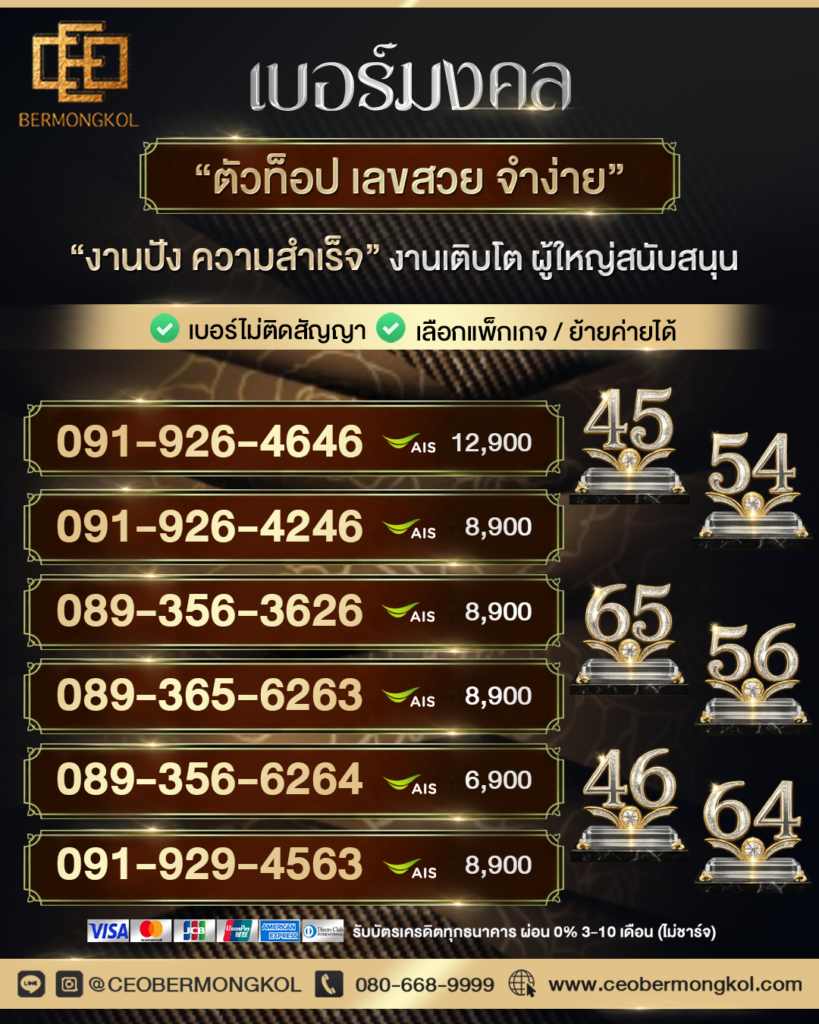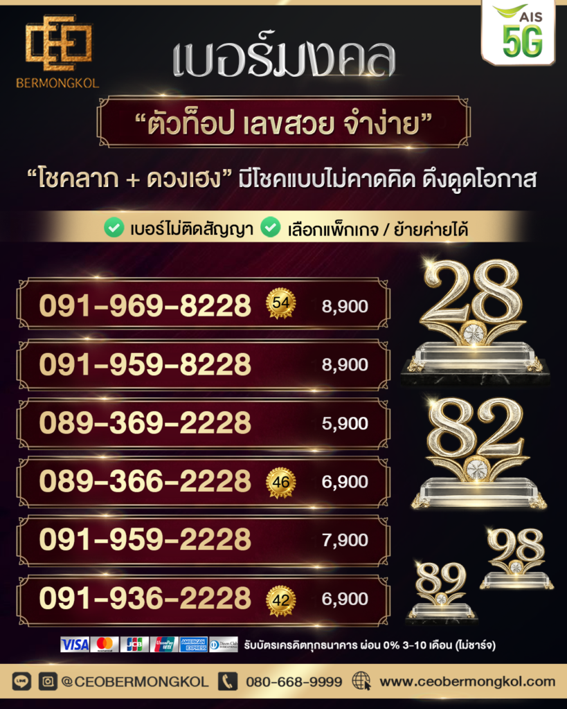 เบอร์สวย เลขศาสตร์มงคล ผลรวมดีมาก ทำนายเบอร์โทรศัพท์