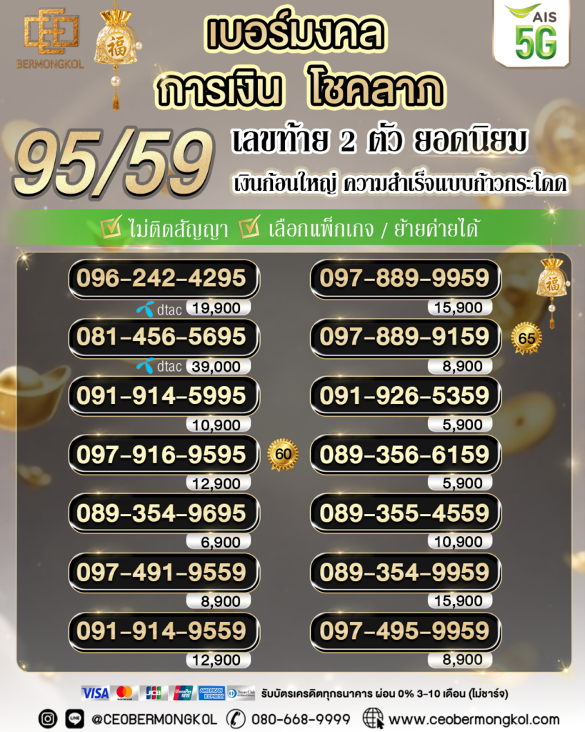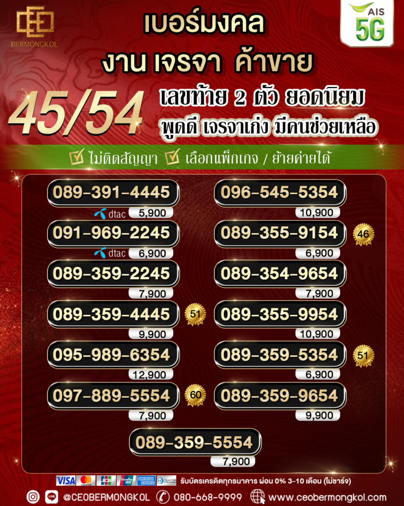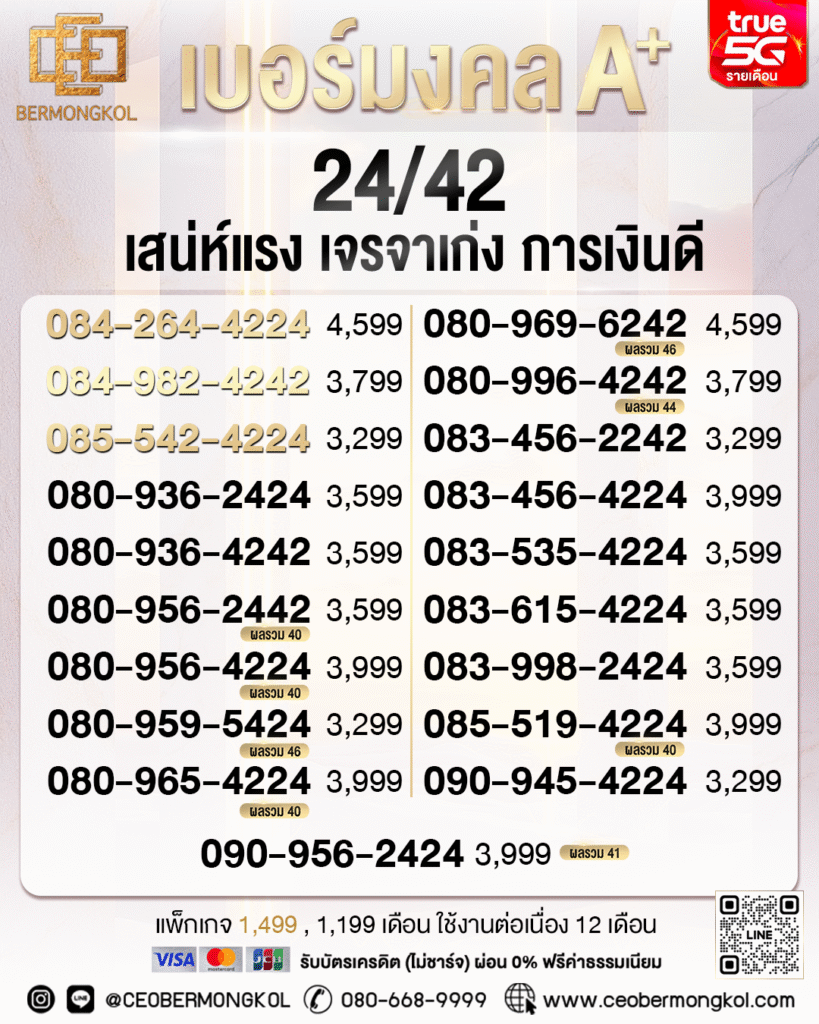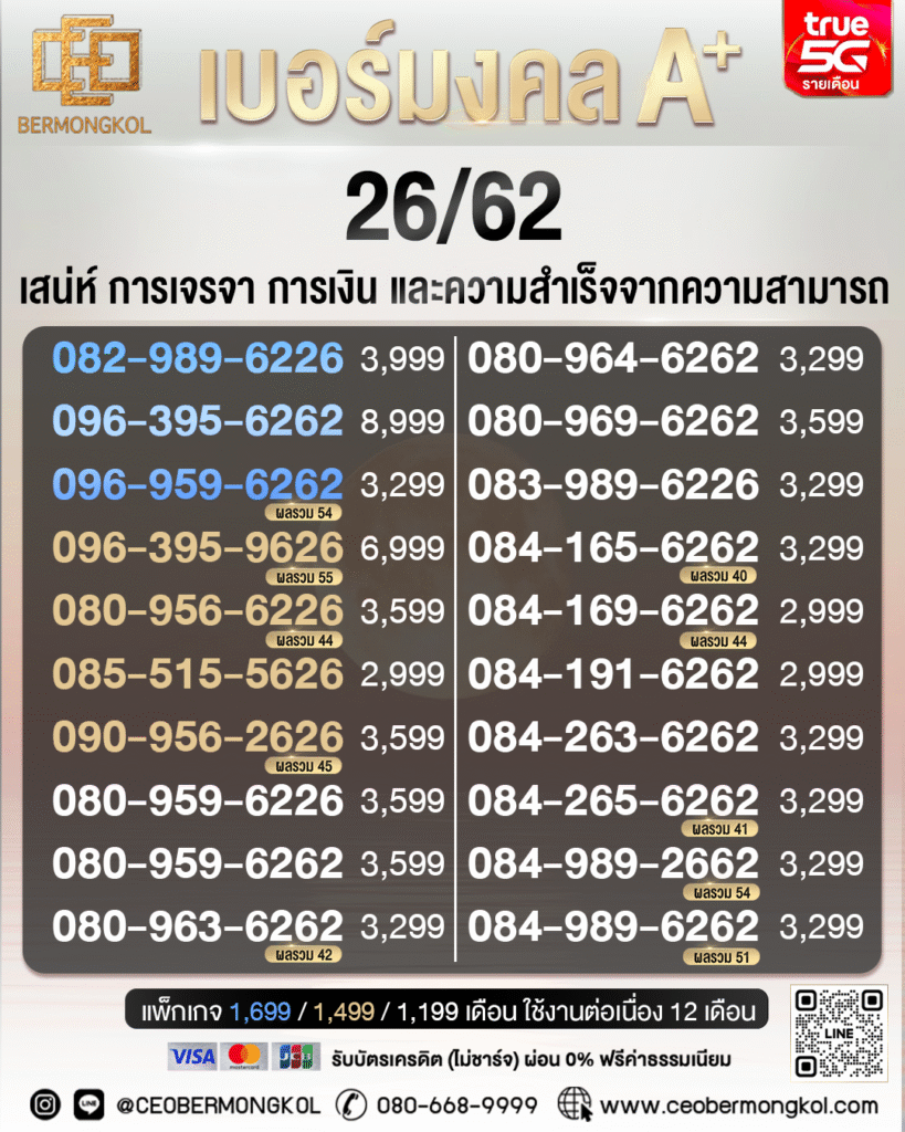 เบอร์สวย เลขศาสตร์มงคล ผลรวมดีมาก ทำนายเบอร์โทรศัพท์