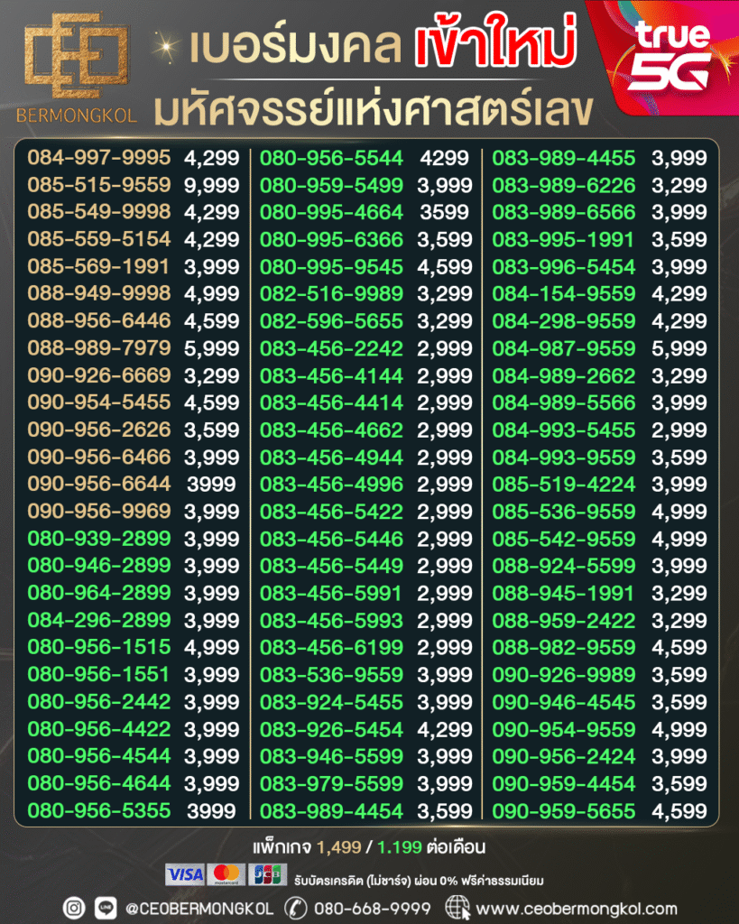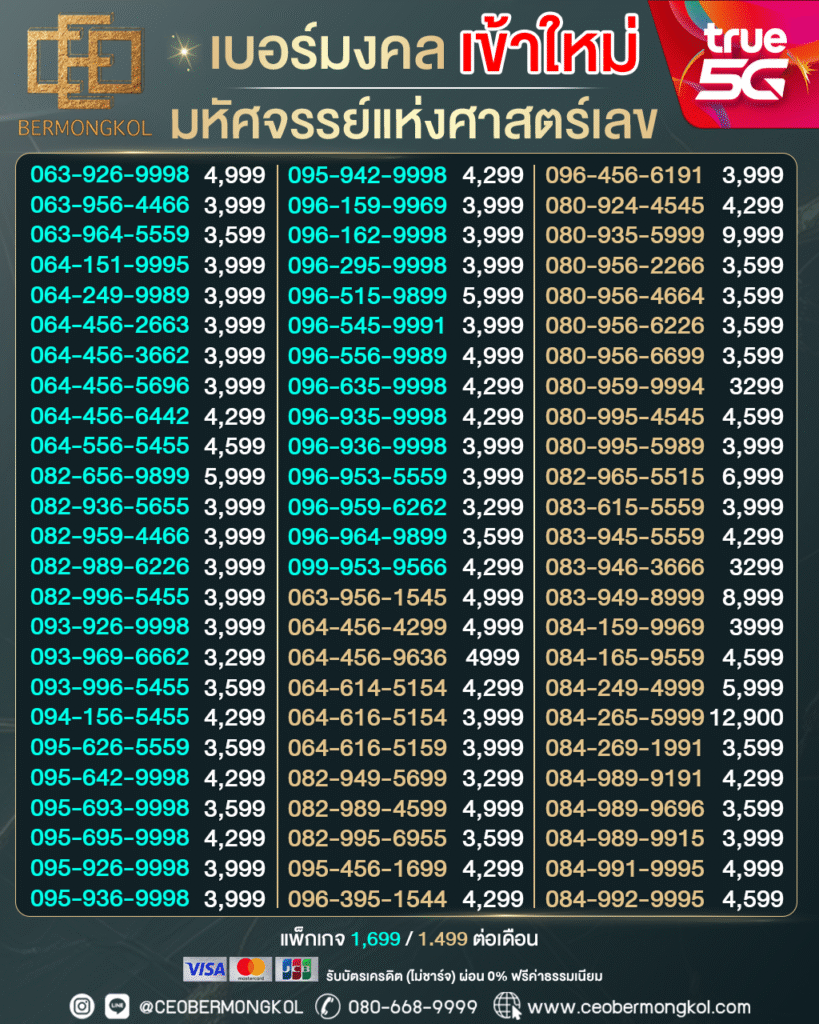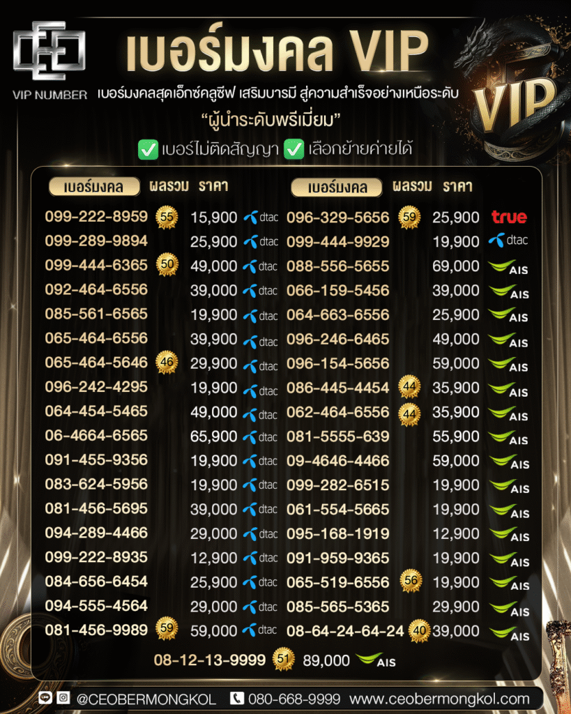 📞 เบอร์มงคลแท้ ทุกประเภทที่คุณตามหา CEO Bermongkol มีคลังเบอร์มงคลจำนวนมาก ครอบคลุมทุกกลุ่มเลข